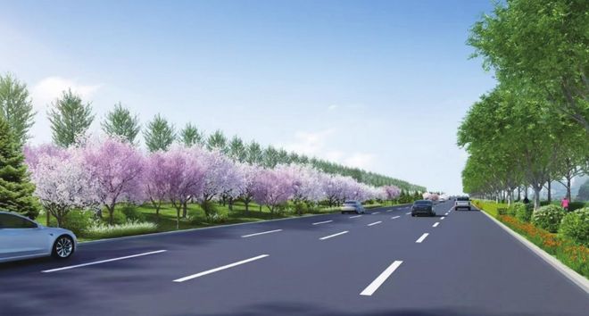 市城乡建设局城市建设处项目指挥申岩松介绍说:“为进一步让市民身处优美、宜居的环境,凸显海棠花开时的美丽效果,在道路端头处种植了大规格的八楞海棠和独杆丁香。机动车分离带采用白色花朵的八楞海棠和粉色花朵的光辉海棠交叉散落种植的方法,以形成‘白里透粉’的自然式花海效果。西段中间机动车分离带选用山荆子(野海棠)与光辉海棠相搭配,同时搭配栽植云杉常绿树组团和紫丁香、红瑞木等灌木地被,达到‘三季有花、四季有绿’的景观效果。大堤路不只是路更宽,而是让附近居民生活更美好、环境更宜居。绿化工程完工后,将成为沈阳市的一张新名片。”(沈阳日报)